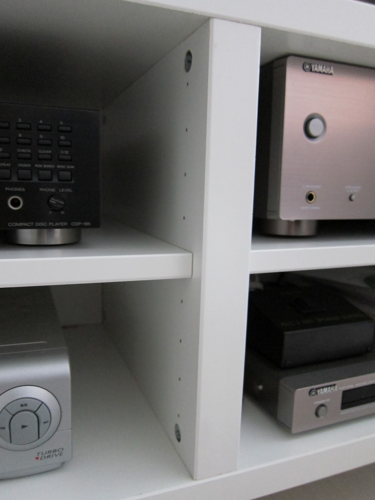 Näiden sisähyllyjen paikkojahan voi muuttaa oman tarpeen mukaan. Bestå-rungon syvyys on 39,5 cm, jos joku haluaa mittailla omia laitteitaan sinne sopiviksi :).